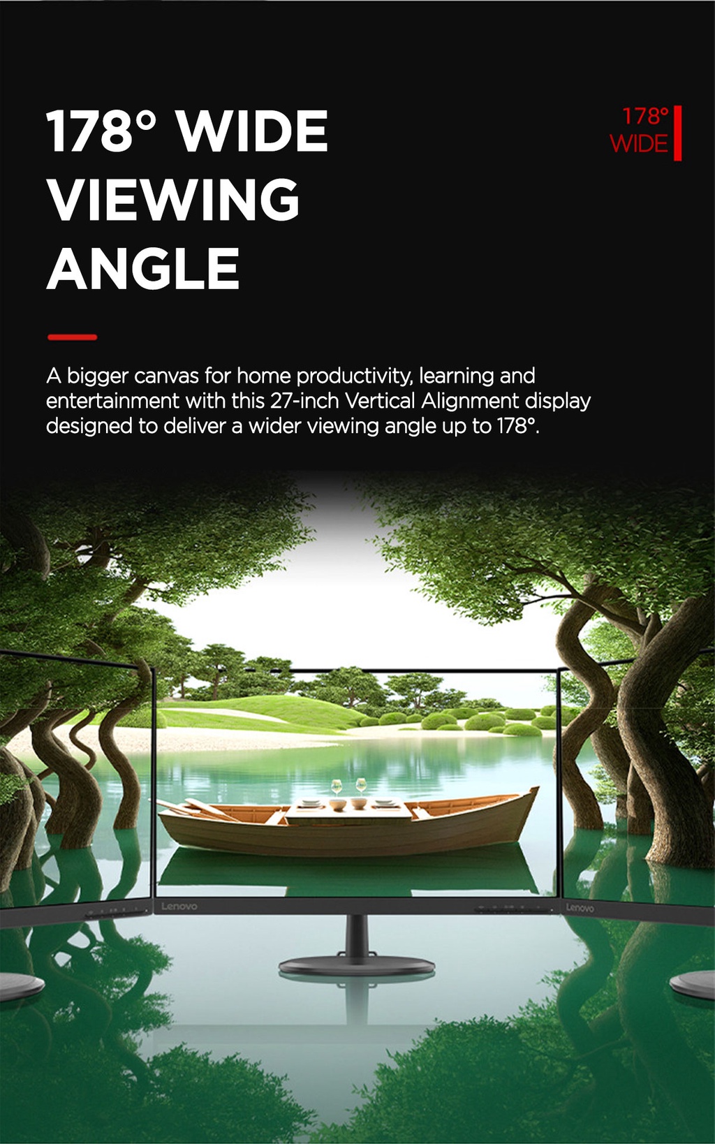 [最佳卖家]联想D27-30 27英寸FHD 1920x1080显示器(66B8KAC6MY)250尼特|72%NTSC 82 dpi |4ms响应率|HDMI VGA多输入|HDMI电缆含|3Y保修